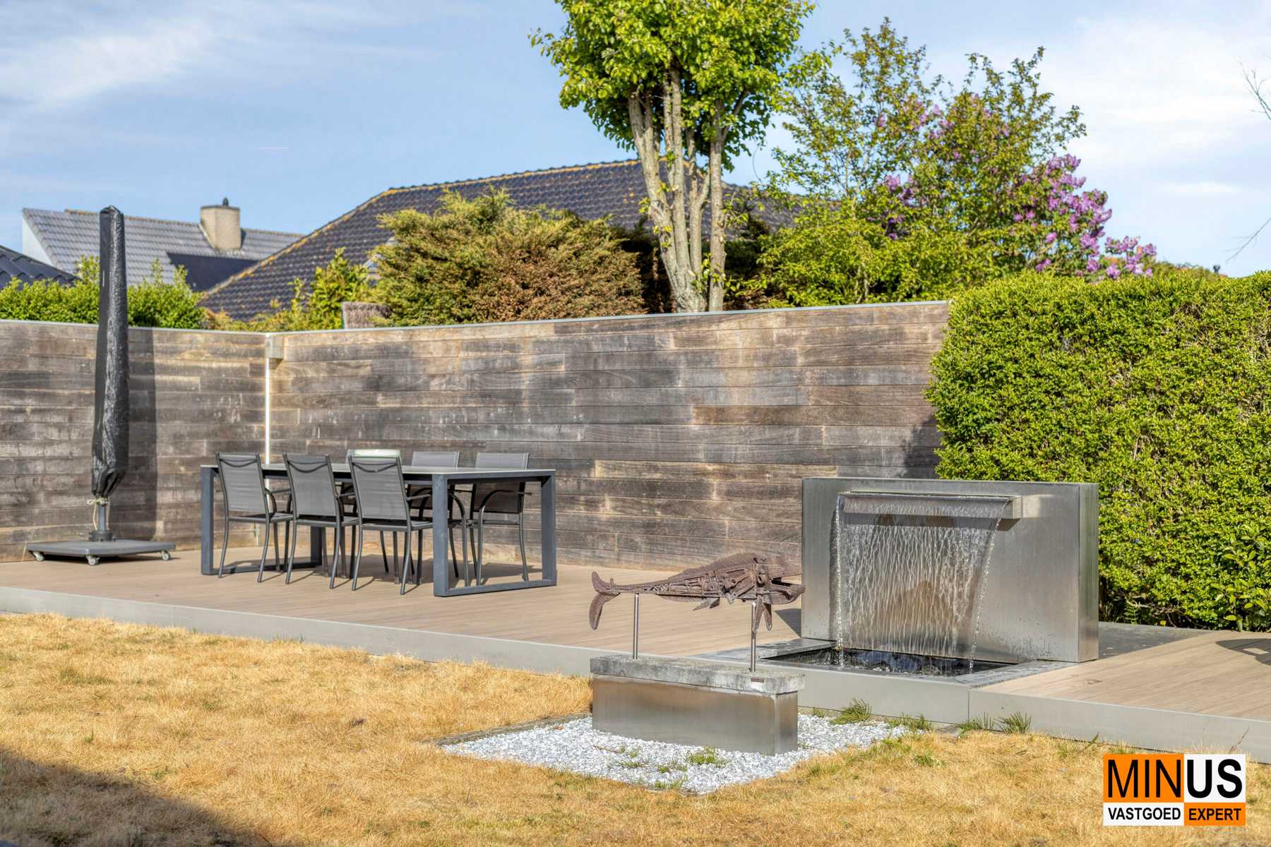 Binnenin valt meteen de lichtrijke woonkamer op, die een mooi zicht biedt op de tuin. Ook vanuit de volledig geïnstalleerde keuken geniet u van dit groene uitzicht. De inkomhal is voorzien van een gastentoilet en op het gelijkvloers vindt u verder nog een garage, een berging en een wasplaats. Op de verdieping beschikt de woning over drie volwaardige slaapkamers, een badkamer en een ruime centrale nachthal.